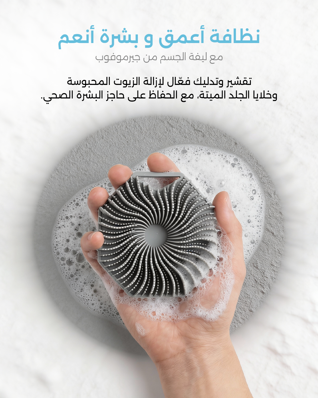 تعمل شعيرات التقشير الخاصة بالليفة على إزالة الزيوت العالقة وخلايا الجلد الميتة بدقة، مما يكشف عن بشرة أكثر نعومة وصحة
